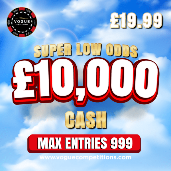 You may enter the competition online or for free by post by sending your entry to VOGUE CAR SALES LTD T/A VOGUE COMPETITIONS on a postcard. You must have an account on VOGUE CAR SALES LTD T/A VOGUE COMPETITIONS for your entry to be processed. All details on your entry MUST correspond to the details on your account to receive the order confirmation and ticket number. Postal entries received without a registered account cannot be processed.