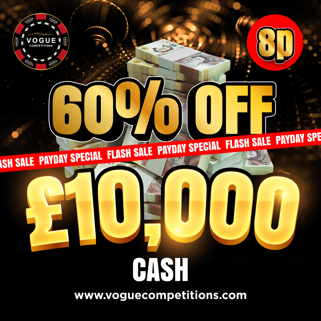 You may enter the competition online or for free by post by sending your entry to VOGUE CAR SALES LTD T/A VOGUE COMPETITIONS on a postcard. You must have an account on VOGUE CAR SALES LTD T/A VOGUE COMPETITIONS for your entry to be processed. All details on your entry MUST correspond to the details on your account to receive the order confirmation and ticket number. Postal entries received without a registered account cannot be processed.