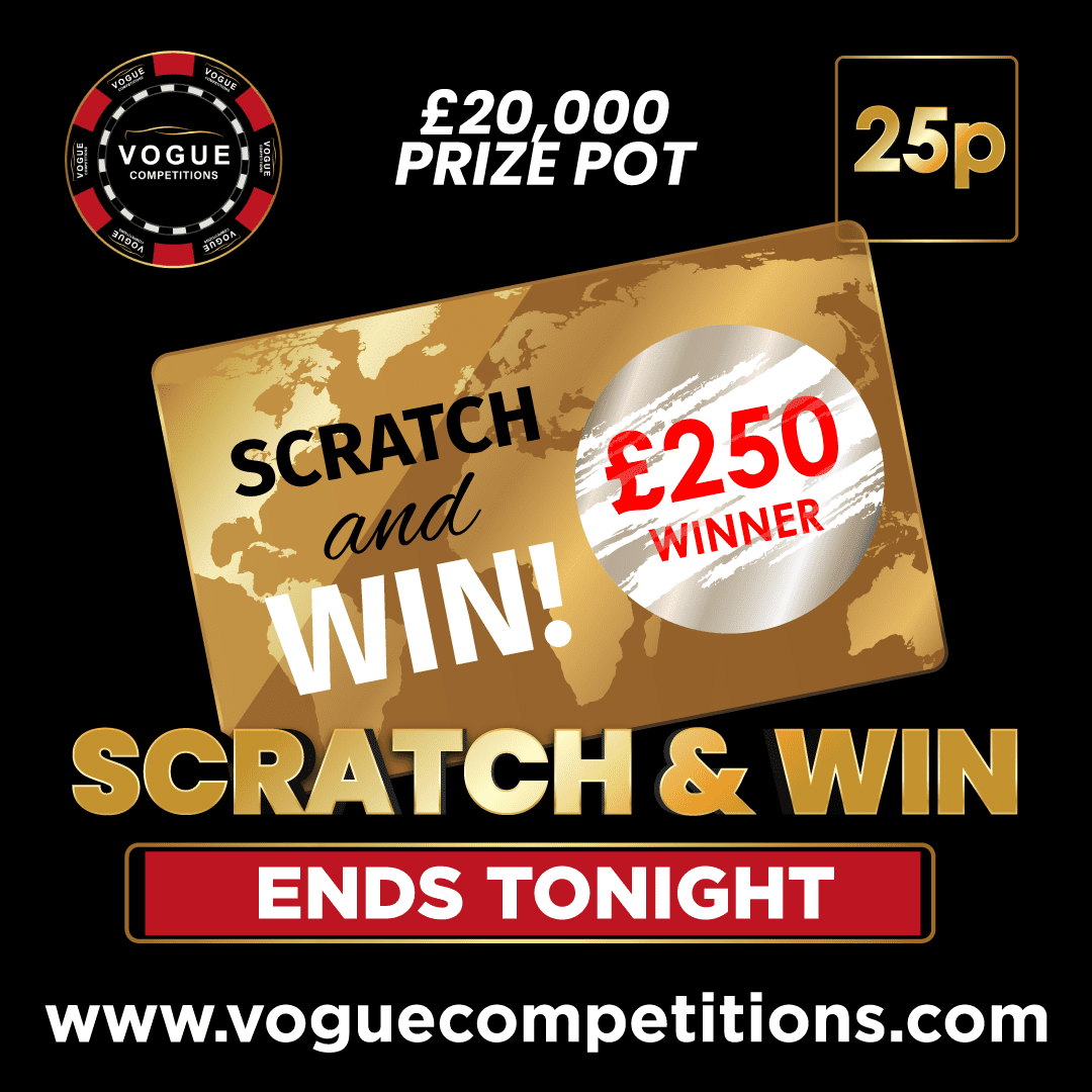 You may enter the competition online or for free by post by sending your entry to VOGUE CAR SALES LTD T/A VOGUE COMPETITIONS on a postcard. You must have an account on VOGUE CAR SALES LTD T/A VOGUE COMPETITIONS for your entry to be processed. All details on your entry MUST correspond to the details on your account to receive the order confirmation and ticket number. Postal entries received without a registered account cannot be processed.