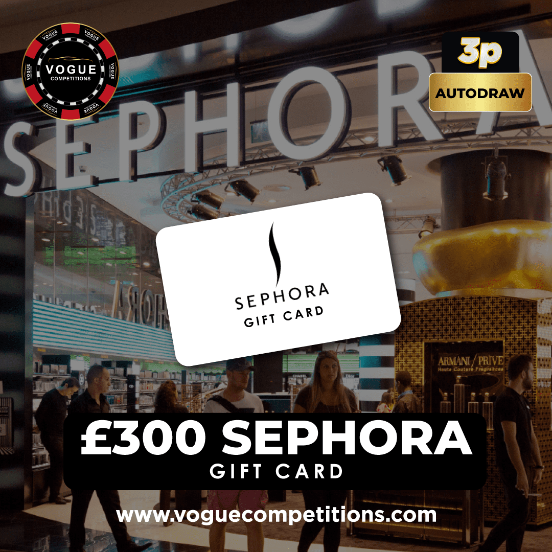£300 SEPHORA GIFT CARD for 3p – Low Odds Auto Draw