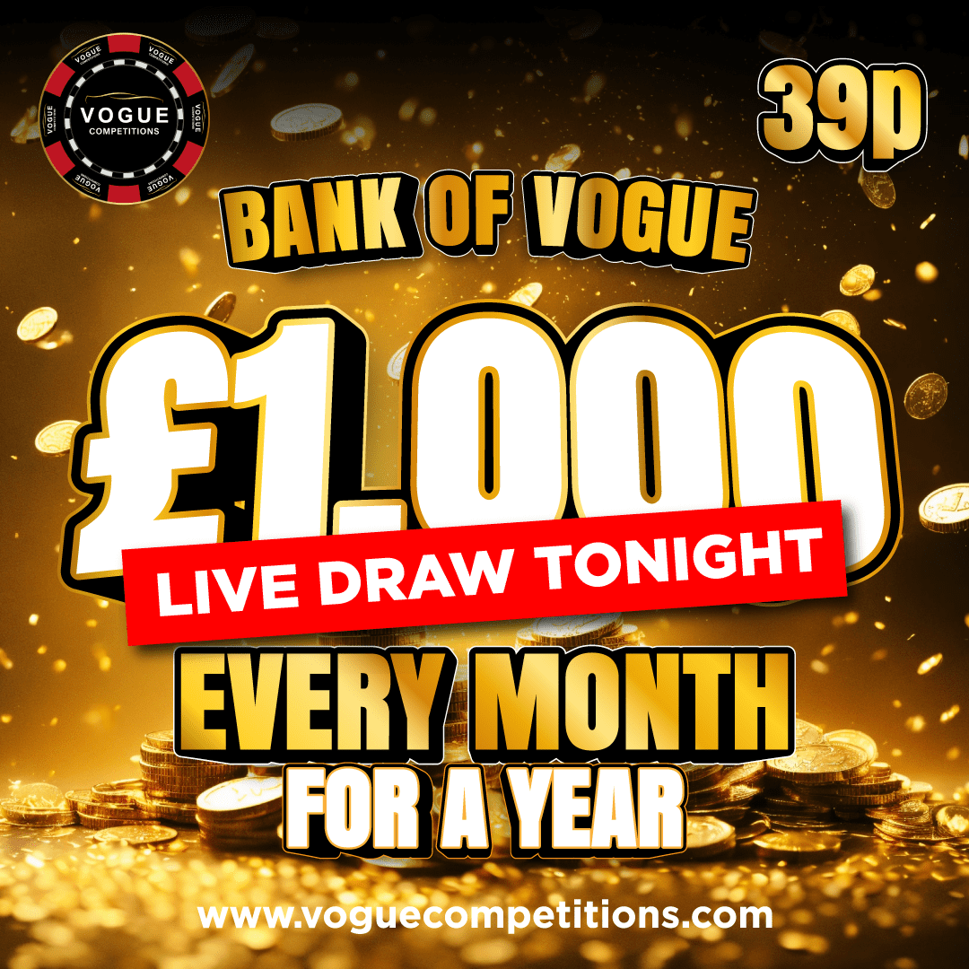 The live draw will take place on the VOGUE CAR SALES LTD T/A VOGUE COMPETITIONS Facebook page using Google’s random number generator to select the winning ticket number from all Entrants.