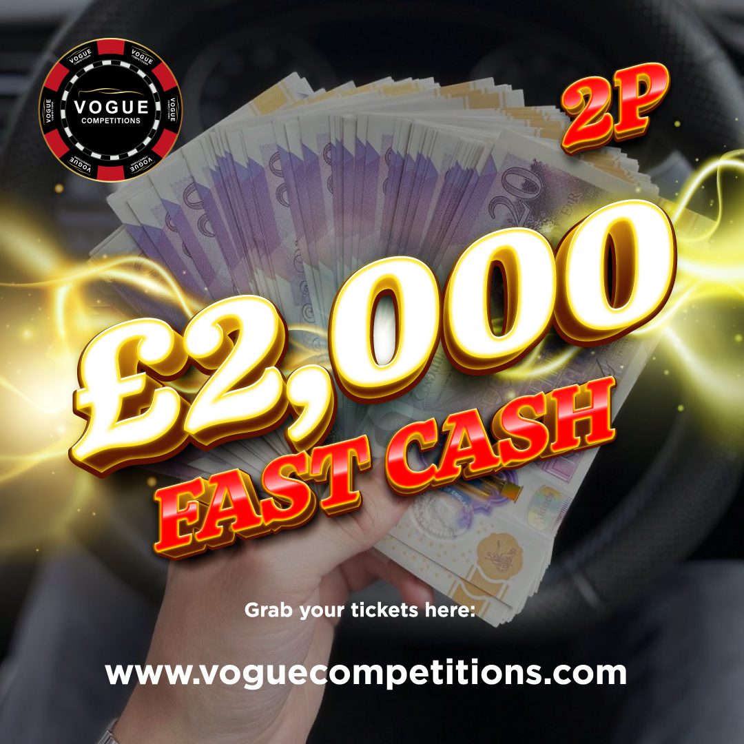 You may enter the competition online or for free by post by sending your entry to VOGUE CAR SALES LTD T/A VOGUE COMPETITIONS on a postcard. You must have an account on VOGUE CAR SALES LTD T/A VOGUE COMPETITIONS for your entry to be processed. All details on your entry MUST correspond to the details on your account to receive the order confirmation and ticket number. Postal entries received without a registered account cannot be processed.