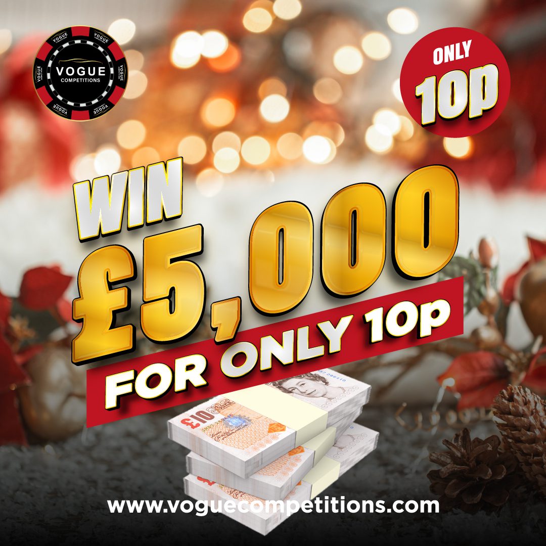 You may enter the competition online or for free by post by sending your entry to VOGUE CAR SALES LTD T/A VOGUE COMPETITIONS on a postcard. You must have an account on VOGUE CAR SALES LTD T/A VOGUE COMPETITIONS for your entry to be processed. All details on your entry MUST correspond to the details on your account to receive the order confirmation and ticket number. Postal entries received without a registered account cannot be processed.