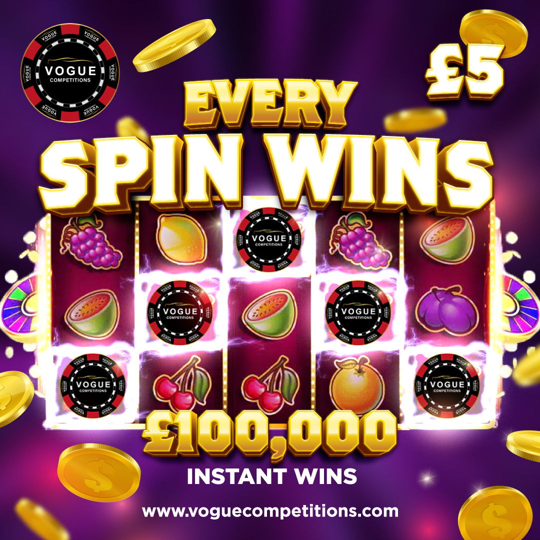Every spin wins a prize! Win anything up to £5,000 instantly!