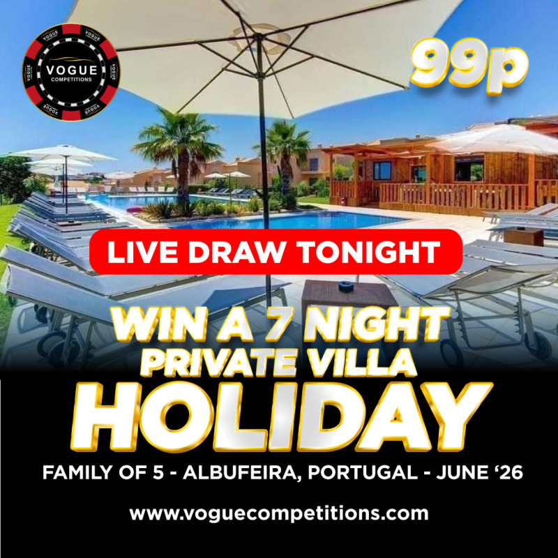 You may enter the competition online or for free by post by sending your entry to VOGUE CAR SALES LTD T/A VOGUE COMPETITIONS on a postcard. You must have an account on VOGUE CAR SALES LTD T/A VOGUE COMPETITIONS for your entry to be processed. All details on your entry MUST correspond to the details on your account to receive the order confirmation and ticket number. Postal entries received without a registered account cannot be processed.