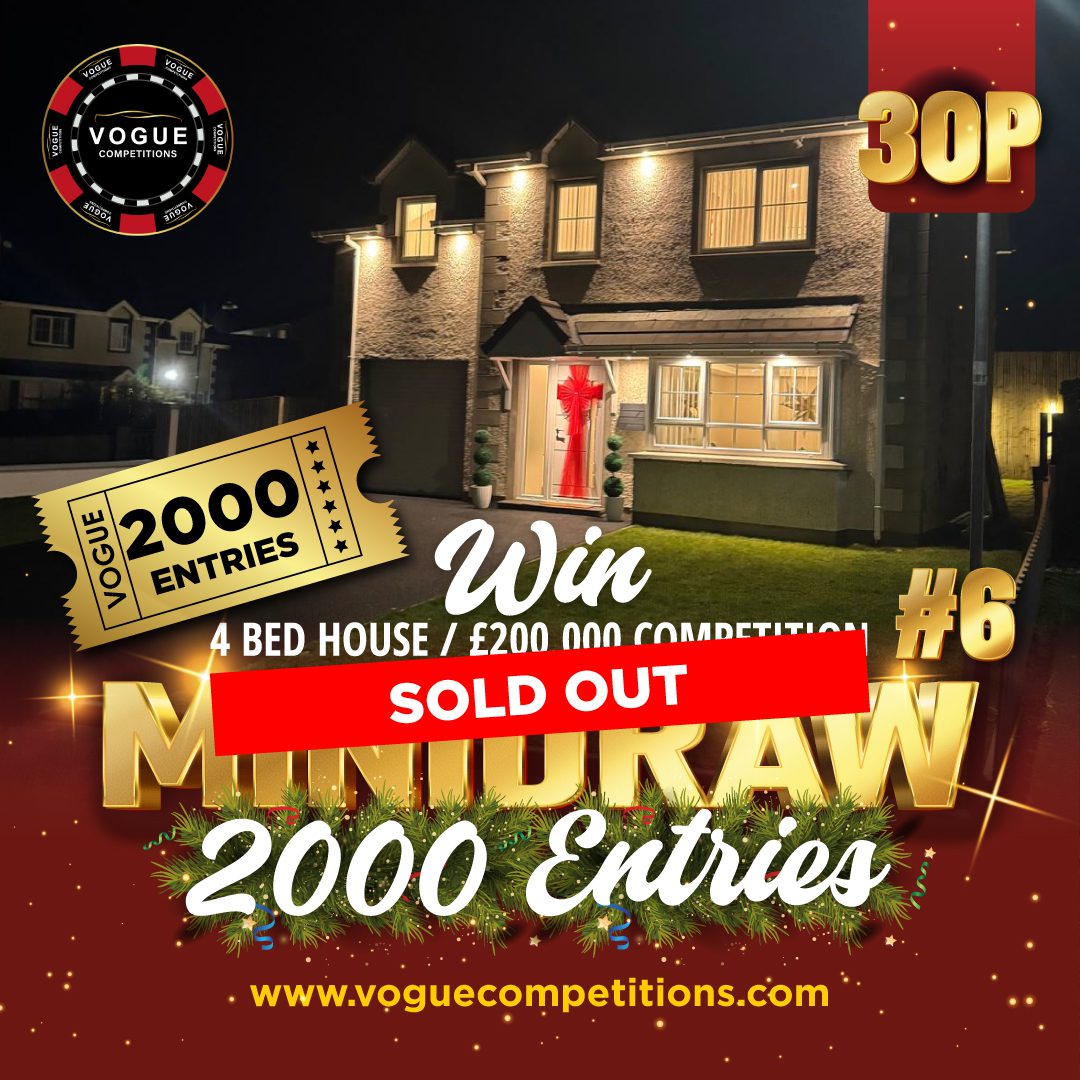 The live draw will take place on the VOGUE CAR SALES LTD T/A VOGUE COMPETITIONS Facebook page using Google’s random number generator to select the winning ticket number from all Entrants.