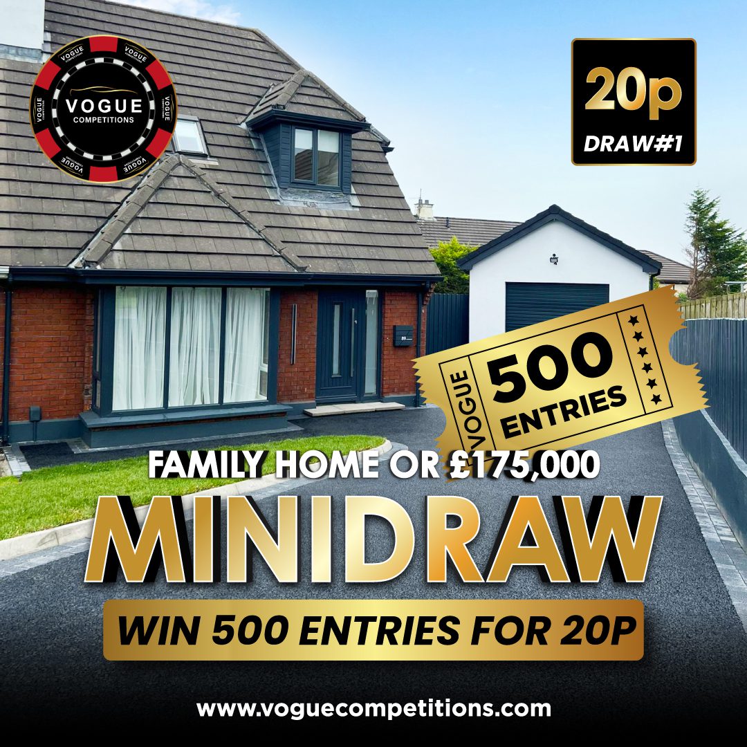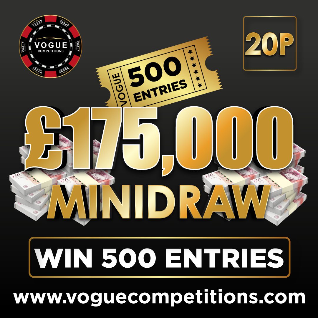 WIN 500 ENTRIES FOR £175,000 DRAW FOR JUST 20p