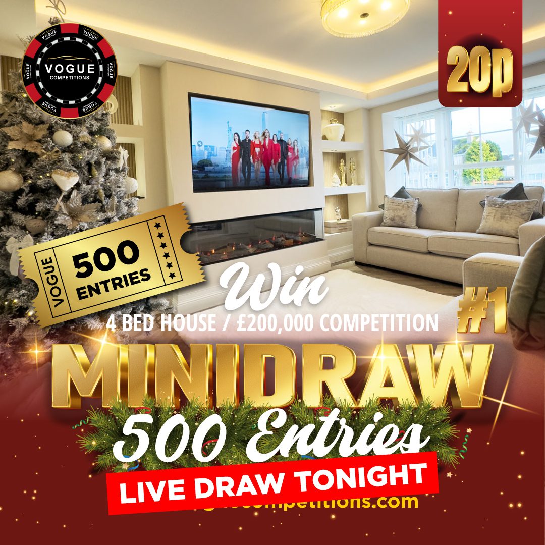 The live draw will take place on the VOGUE CAR SALES LTD T/A VOGUE COMPETITIONS Facebook page using Google’s random number generator to select the winning ticket number from all Entrants.