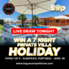 The draw is done live on Facebook using a random number generator to determine the winning ticket number. You’ll be contacted directly if you have won.